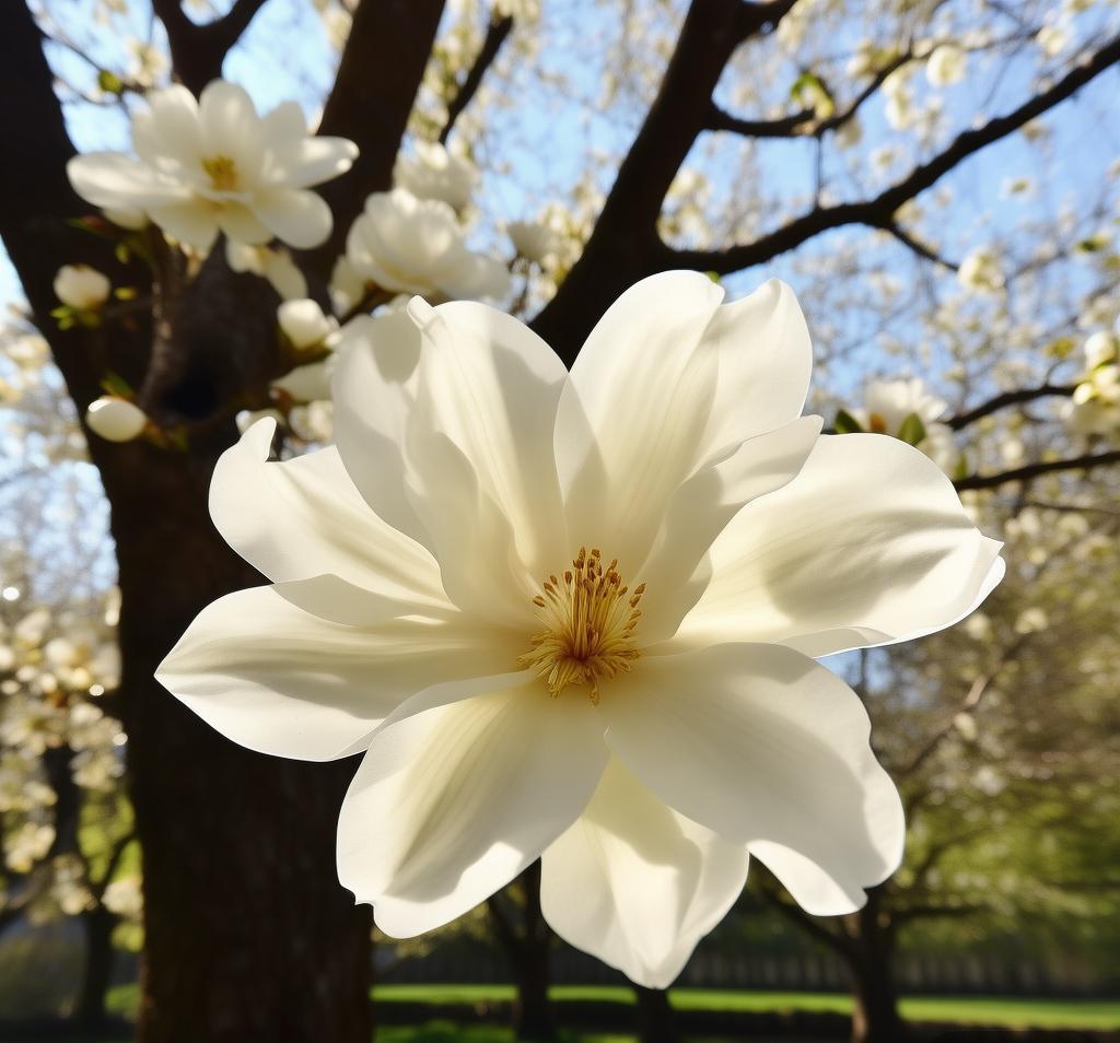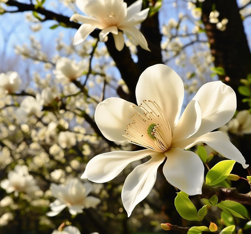 Lv.5 3小时前望春玉兰是春季开花的乔木,花瓣白色,香气浓郁。喜光照,耐寒。花期3-4月。