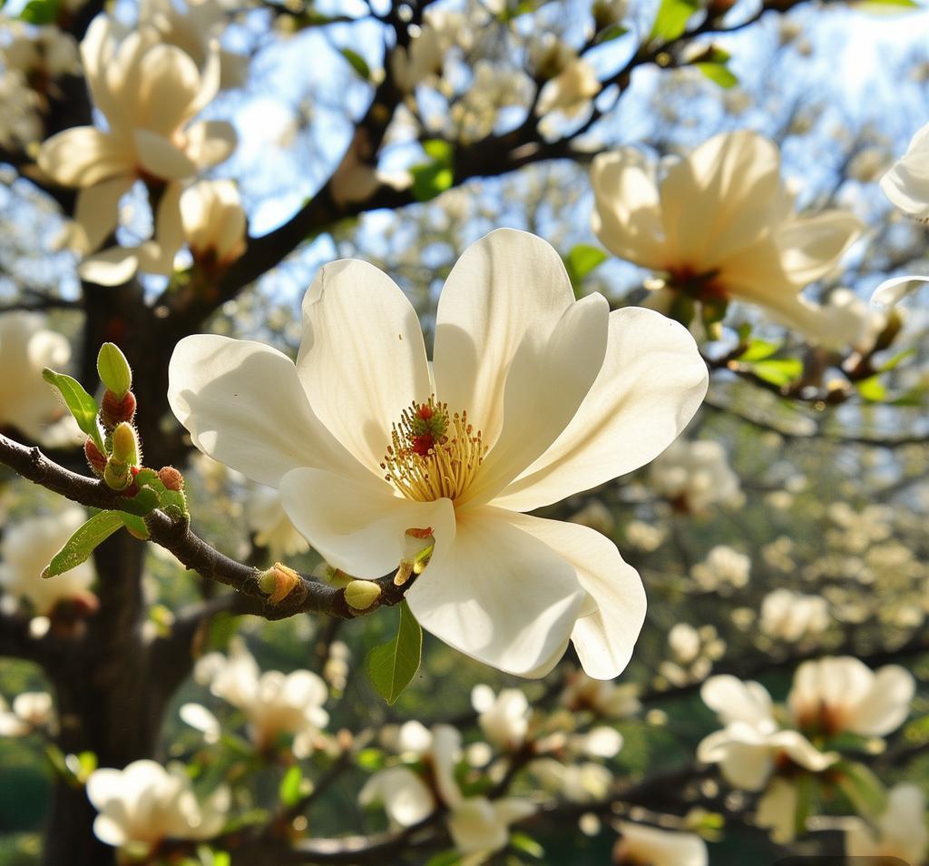 Lv.5 5小时前望春玉兰是一种大型落叶乔木,花白色,有芳香。生长于海拔1000米以下,喜光、耐寒。花期在3-4月,先花后叶。